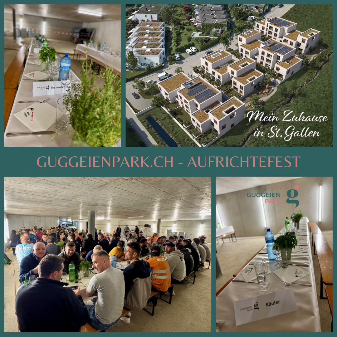 Wir durften ein wunderschönes Aufrichtefest im Rohbau unseres Projekts «Guggeien Park» feiern. Zahlreiche Unternehmer:innen sowie unsere Käufer:innen waren dabei und haben den Abend mit uns genossen.